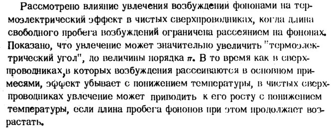 Рассмотрено влияние увлечения возбуждений фононами на термоэлектрический эффект в чистых сверхпроводниках, когда длина свободного пробег а возбуждений ограничена рассеянием на фононах. Показано, что увлечение может значительно увеличить "термоэлектрический угол", до величины порядка π. В то время как в сверхпроводниках^» которых возбуждения рассеиваются в основном примесями, эффект убывает с понижением температуры, в чистых сверхпроводниках увлечение может приводить к его росту с понижением температуры, если длина пробега фононов при этом продолжает возрастать.
