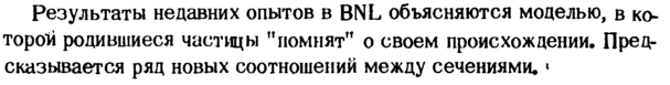 Результаты недавних опытов в BNL объясняются моделью, в которой родившиеся частицы "помнят" о своем происхождении. Предсказывается ряд новых соотношений между сечениями.1