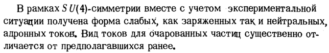 В рамках S [/(4)-симметрии вместе с учетом экспериментальной ситуации получена форма слабых, как заряженных так, и нейтральных, адронных токов. Вид токов для очарованных частиц существенно отличается от предполагавшихся ранее.
