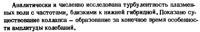 Аналитически и численно исследована турбулентность плазменных волн с частотами, близкими к нижней гибридной. Показано существование коллапса — образование за конечное время особенности амплитуды колебаний.
