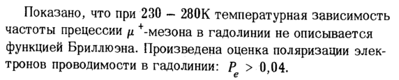 Показано, что при 230 280К температурная зависимость частоты прецессии μ +-мезона в гадолинии не описывается функцией Бриллюэна. Произведена оценка поляризации электронов проводимости в гадолинии: Ρ > 0,04.