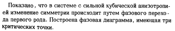 Показано, что в системе с сильной кубической анизотропией изменение симметрии происходит путем фазового перехо -да первого рода. Построена фазовая диаграмма, имеющая три критических точки.