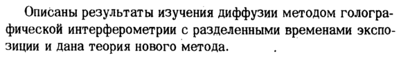 Описаны результаты изучения диффузии методом гологра-фической интерферометрии с разделенными временами экспозиции и дана теория нового метода.