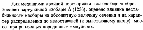 Для механизма двойной перезарядки, включающего образование виртуальной изобары Δ (1236), оценено влияние нестабильности изобары на абсолютную величину сечения и на характер распределения по недостающей (к вылетающему пиону) массе при различных переданным импульсах.