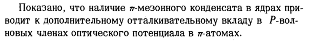 Показано, что наличие тг-мезонного конденсата в ядрах приводит к дополнительному отталкивательному вкладу в Р-вол-новых членах оптического потенциала в тг-атомах.