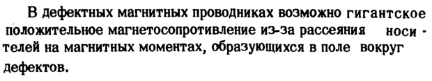 В дефектных магнитных проводниках возможно гигантское положительное магнетосопротивление из-за рассеяния носи -телей на магнитных моментах, образующихся в поле вокруг дефектов.