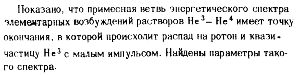 Показано, что примесная ветвь энергетического спектра •элементарных возбуждений растворов Не3Не4 имеет точку окончания, в которой происходит распад на ротон и квазичастицу Не3 с малым импульсом. Найдены параметры такого спектра.