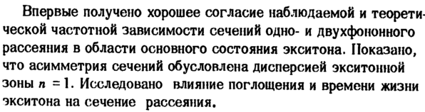 Впервые получено хорошее согласие наблюдаемой и теоретической частотной зависимости сечений однои двухфононного рассеяния в области основного состояния экситона. Показано, что асимметрия сечений обусловлена дисперсией экситониой зоны η = 1. Исследовано влияние поглощения и времени жизни экситона на сечение рассеяния.