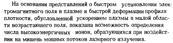 На основании представлений о быстром установлении электромагнитного поля в плазме и быстрой деформации профиля плотности, обусловленной ускорением плазмы в малой области возрастающего поля, показана возможность определения числа высокоэнергичных ионов, образующихся при воздействии на мишень мощных потоков лазерного излучения.