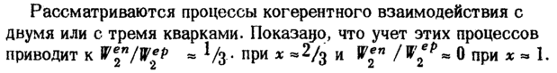 Рассматриваются процессы когерентного взаимодействия с двумя или с тремя кварками. Показало, что учет этих процессов приводит к W\n/Wf2P !/з · ПРИ * ~2/з и νζ* / wfP«V при * 1.