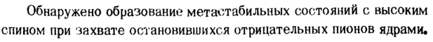 Обнаружено образование метастабильных состояний с высоким спином при захвате остановившихся отрицательных пионов ядрами.
