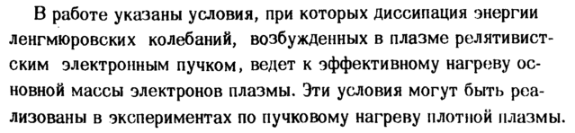 В работе указаны условия, при которых диссипация энергии ленгмюровских колебаний, возбужденных в плазме релятивистским электронным пучком, ведет к эффективному нагреву основной массы электронов плазмы. Эти условия могут быть реализованы в экспериментах по пучковому нагреву плотной плазмы.
