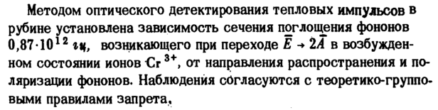 Методом оптического детектирования тепловых импульсов в рубине установлена зависимость сечения поглощения фононов 0,87Ю12 гц, возникающего при переходе Ε ·+ 2А в возбужденном состоянии ионов €г3+> от направления распространения и поляризации фононов. Наблюдения согласуются с теоретико-групповыми правилами запрета,.