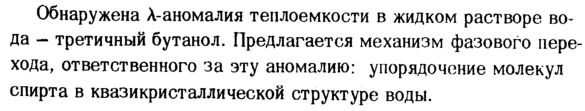 Обнаружена λ-аномалия теплоемкости в жидком растворе вода третичный бутанол. Предлагается механизм фазового перехода, ответственного за эту аномалию: упорядочение молекул спирта в квазикристаллической структуре воды.