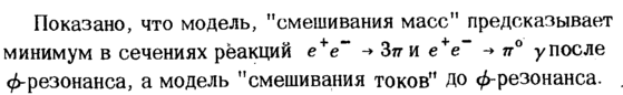 Показано, что модель, "смешивания масс" предсказывает минимум в сечениях реакций е+е~ -» Зтг и е+е~ -> π° у после </>-резонанса, а модель "смешивания токов" До ф-резонанса.