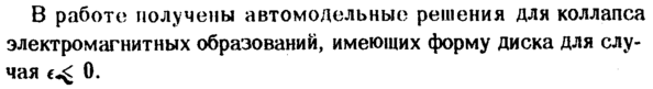 работе получены автомодельные решения для коллапса электромагнитных образований, имеющих форму диска для случая 0.