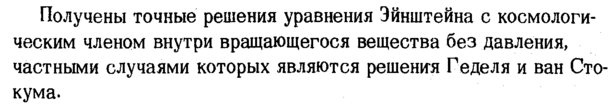 Получены точные решения уравнения Эйнштейна с космологическим членом внутри вращающегося вещества без давления, частными случаями которых являются решения Педеля и ван Сто-кума.