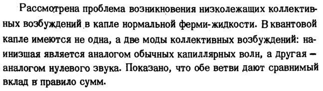 Рассмотрена проблема возникновения низколежащих коллективных возбуждений в капле нормальной ферми-жидкости. В квантовой капле имеются не одна, а две моды коллективных возбуждений: наинизшая является аналогом обычных капиллярных волн, а другая -аналогом нулевого звука. Показано, что обе ветви дают сравнимый вклад в правило сумм.