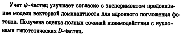 Учет ^-4аствд улучшает согласие с экспериментом предсказание модели векторной доминантности для адронного поглощения фотонов. Получена оценка полных сечений взаимодействия с нуклонами гипотетических D-Частиц.