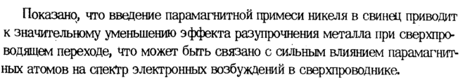Показано, что введение парамагнитной примеси никеля в свинец приводит к значительному уменьшению эффекта разупрочнения металла при сверхпроводящем переходе, Что может быть связано с сильным влиянием парамагнитных атомов на cnetfrp электронных возбуждений в сверхпроводнике.