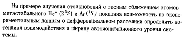 На примере изучения столкновений с тесным сближением атомов метастабильного Не* (23S) и Аг (lS) показана возможность по экспериментальным данным о дифференциальном рассеянии определять потенциал взаимодействия и ширину автоионизационного уровня системы.