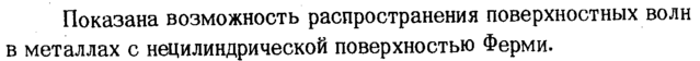 Показана возможность распространения поверхностных волн в металлах с нецилиндрической поверхностью Ферми.