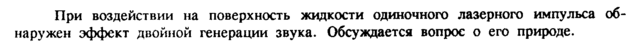 При воздействии на поверхность жидкости одиночного лазерного импульса обнаружен эффект двойной генерации звука. Обсуждается вопрос о его природе.
