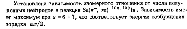 Установлена зависимость изомерного отношения от числа испущенных нейтронов в реакции Sn(^"# χή) 108,109Ιηβ Зависимость имеет максимум при χ =6 + 7, что соответствует энергии возбуждения порядка тп/2.