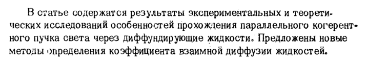Распространение когерентного светового пучка через диффундирующие жидкости и определение коэффициента диффузии