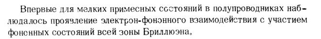 Впервые для мелких примесных состояний в полупроводниках наблюдалось проявление электрон-фононного взаимодействия с участием фонснных состояний всей зоны Бриллюэна.