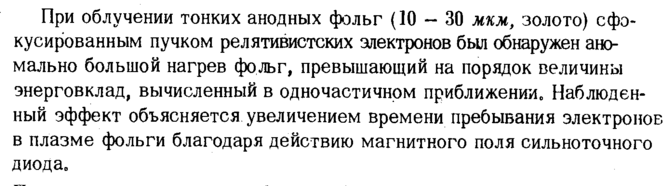 Нагрев тонких фольг сильноточным пучком электронов