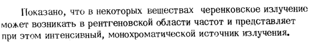 Показано, что в некоторых веществах черенковское излучение может возникать в рентгеновской области частот и представляет при этом интенсивный, монохроматической источник излучения.