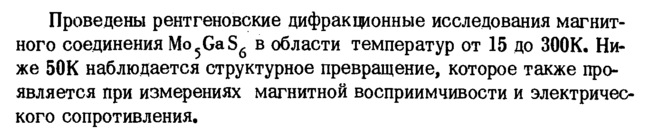 Структурные и магнитные особенности тройного сульфида молибдена Mo5 GaS6