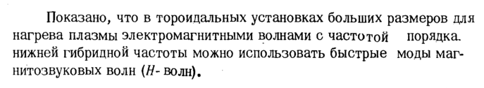 Показано, что в тороидальных установках больших размеров для нагрева плазмы электромагнитными волнами с частотой порядка, нижней гибридной частоты можно использовать быстрые моды маг-нитозвуковых волн (Нволн).
