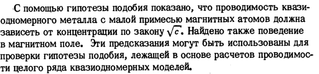 С помощью гипотезы подобия показано, что проводимость квазиодномерного металла с малой примесью магнитных атомов должна зависеть от концентрации по закону \fc. Найдено также поведение в магнитном поле. Эти предсказания могут быть использованы для проверки гипотезы подобия, лежащей в основе расчетов проводимости целого ряда квазиодномерных моделей.