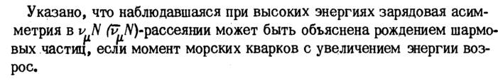 Указано, что наблюдавшаяся при высоких энергиях зарядовая асимметрия в ν^Ν /У)-рассеянии может быть объяснена рождением шармо-вых частиц, если момент морских кварков с увеличением энергии возрос.