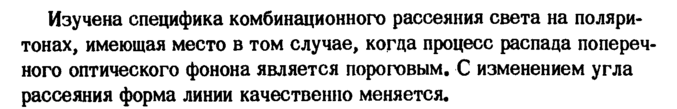 Изучена специфика комбинационного рассеяния света на поляри-тонах, имеющая место в том случае, когда процесс распада поперечного оптического фонона является пороговым. С изменением угла рассеяния форма линии качественно меняется.