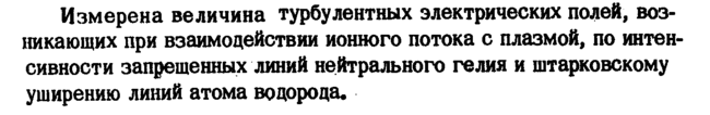 Измерена величина турбулентных электрических полей, возникающих при взаимодействии ионного потока с плазмой, по интенсивности запрещенных линий нейтрального гелия и штарковскому уширению линий атома водорода.