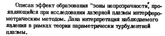 Описан эффект образования "зоны непрозрачности* проявляющийся при исследовании лазерной плазмы интерферо-метрическим методом. /1ана интерпретация наблюдаемого явления в рамках теории параметрически оурбулентной плазмы.