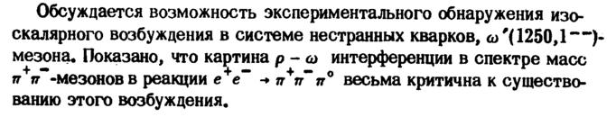 Обсуждается возможность экспериментального обнаружения изо-скалярного возбуждения в системе нестранных кварков, ω '(1250,1—) мезона. Показано, что картина ρ ω интерференции в спектре масс тг+17~-мезонов в реакции е+е~ -> π*π~π° весьма критична к существованию этого возбуждения.