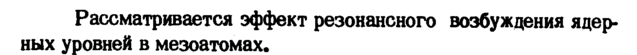 Рассматривается эффект резонансного возбуждения ядерных уровней в мезоатомах.