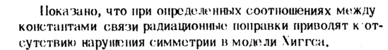 Показано, что при определенных соотношениях между константами связи радиационные поправки приводят к от сутствию нарушения симметрии в модели Хиггса.
