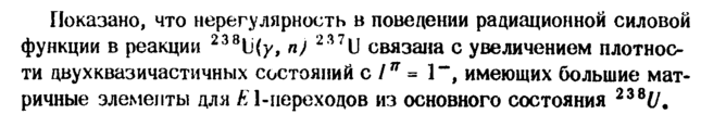 Показано, что нерегулярность в поведении радиационной силовой функции в реакции 238U(y, η) 247U связана с увеличением плотности двухквазичастичных состояний с ln = 1"", имеющих большие матричные элементы для £1-иереходов из основного состояния 238ί/#