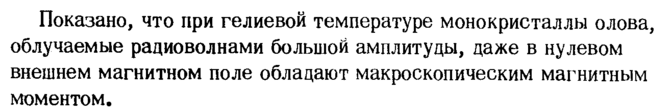 Показано, что при гелиевой температуре монокристаллы олова, облучаемые радиоволнами большой амплитуды, даже в нулевом внешнем магнитном поле обладают макроскопическим магнитным моментом.