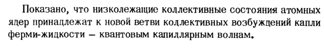 Показано, что низколежащие коллективные состояния атомных ядер принадлежат к новой ветви коллективных возбуждений капли ферми-жидкости квантовым капиллярным волнам.