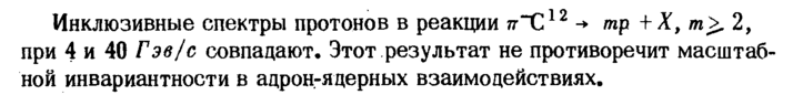 Инклюзивные спектры протонов в реакции п-^С12 -> тр -\-Х, т>. 2, при 4 и 40 Гэв/с совпадают. Этот результат не противоречит масштабной инвариантности в адрон-ядерных взаимодействиях.