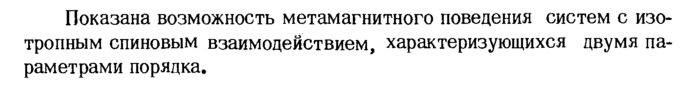 Показана возможность метамагнитного поведения систем с изотропным спиновым взаимодействием, характеризующихся двумя параметрами порядка.