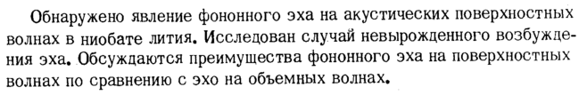 Обнаружено явление фононного эха на акустических поверхностных волнах в ниобате лития. Исследован случай невырожденного возбуждения эха. Обсуждаются преимущества фононного эха на поверхностных волнах по сравнению с эхо на объемных волнах.