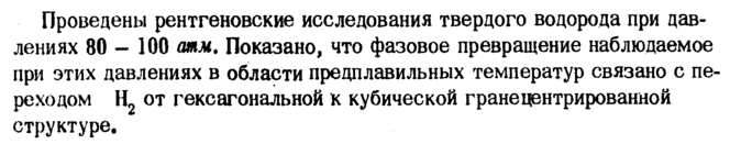 Проведены рентгеновские исследования твердого водорода при давлениях 80 100 атм. Показано, что фазовое превращение наблюдаемое при этих давлениях в области предплавильных температур связано с переходом Н2 от гексагональной к кубической гранецентрированной структуре.