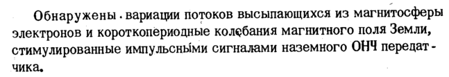 Обнаружены. вариации потоков высыпающихся из магнитосферы электронов и короткопёриодные колебания магнитного поля Земли, стимулированные импульсными сигналами наземного ОНЧ передат -чика.